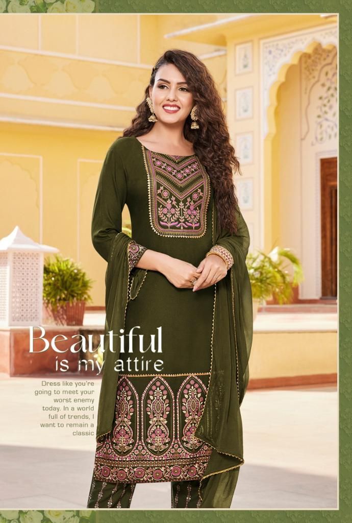 RAYON WITH CLASSY GOLD PRINT , Fancy Embroidery Work , NAZMIN DUPPATTA